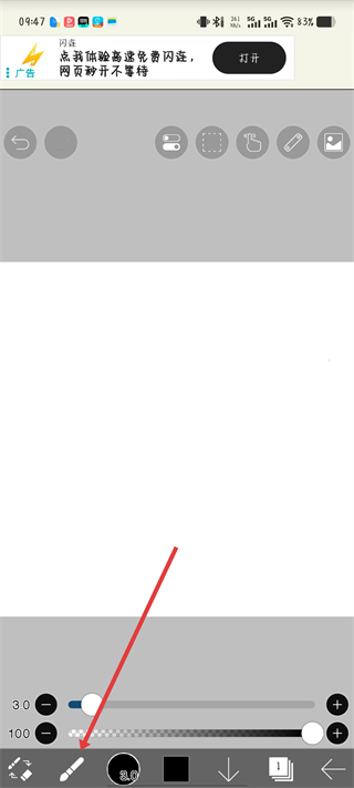 1、打開愛筆思畫X的繪畫界面,點擊畫筆圖標。
