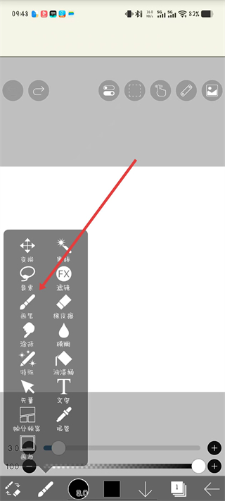 2、在彈出的工具菜單中,點擊畫筆選項。