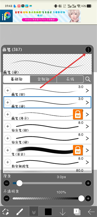 3、進入畫筆頁面后,點擊右上角三點圖標。