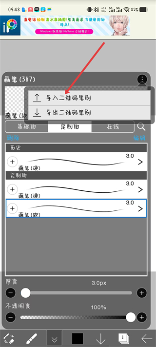 4、在彈出的選項中,點擊導入二維碼筆刷即可。