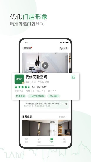 搞定新家是一款專為全屋定制行業(yè)商家打造的一站式營銷管理軟件,能夠幫助商戶高效管理店鋪,優(yōu)化客戶獲取和維護流程。這款軟件通過豐富的功能模塊,提升了商家的市場競爭力,幫助全面發(fā)展業(yè)務。商家可以輕松上傳案例、場景和產品視頻,讓店鋪內容更加豐富多樣。