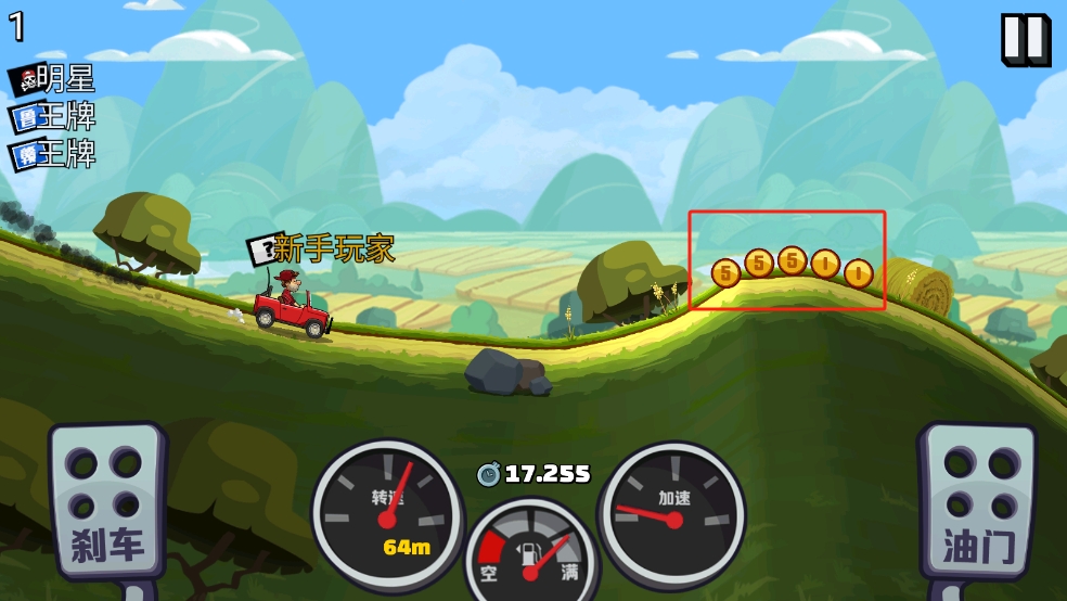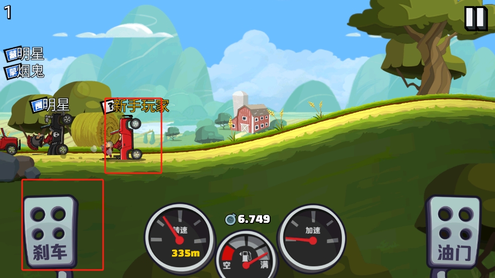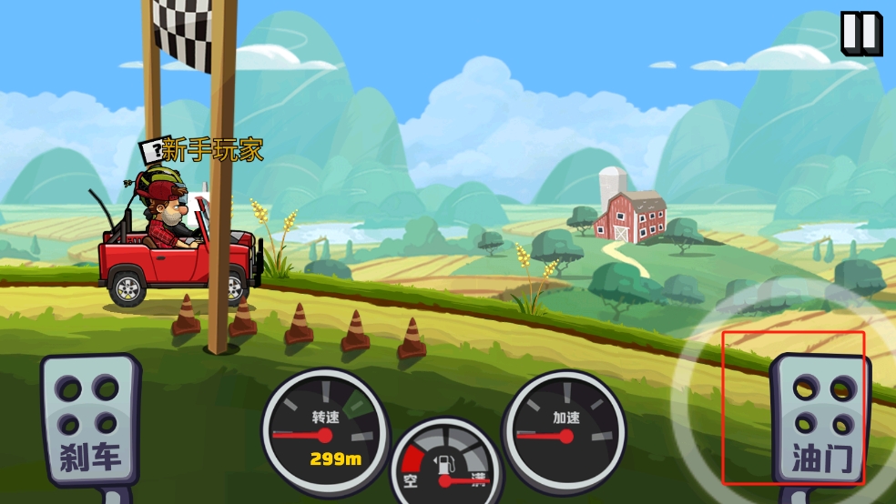 在操作上是比較簡單的,左邊是剎車按鈕,右邊是油門按鈕,想剎車想加速點(diǎn)好按鈕就行,在地面自然是油門加速了,剎車減速了,不過這游戲還有在空中,那么在空中的時(shí)候,點(diǎn)擊油門能抬高車頭,點(diǎn)擊剎車能讓車頭往下降,這樣就可以保持車身的平衡,調(diào)整車身能夠平穩(wěn)的落地。這里在給大家介紹一個(gè)小技巧,車子在空中的時(shí)候往往車頭都翹的很高,這時(shí)候可以多按幾下(或者長按一會(huì))剎車按鈕起到快速調(diào)整的作用。