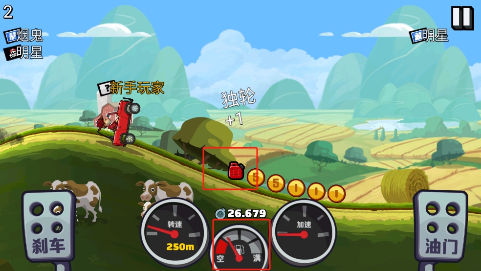 4、當(dāng)你們發(fā)現(xiàn)車輛快沒有燃油的時(shí)候,可以利用慣性進(jìn)行移動(dòng)并且在游戲中還會(huì)有燃油的出現(xiàn)增加燃油。