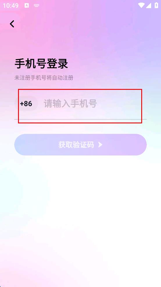 3、在手機(jī)號(hào)登錄頁(yè)面的輸入框中,輸入自己的手機(jī)號(hào)。