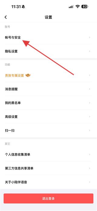 3.進(jìn)入設(shè)置界面后,點(diǎn)擊賬號(hào)與安全選項(xiàng)。