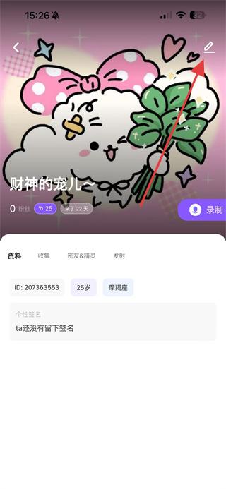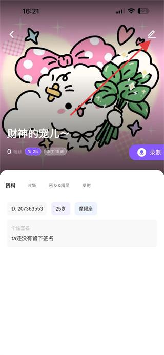 3、在個(gè)人主頁(yè)點(diǎn)擊右上角編輯圖標(biāo),進(jìn)入編輯頁(yè)面。