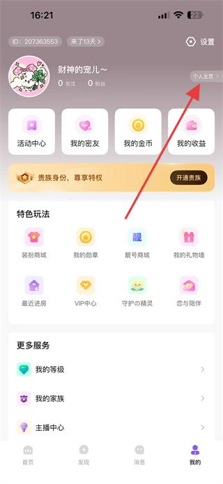 2、在個(gè)人頁(yè)面中,點(diǎn)擊個(gè)人主頁(yè)選項(xiàng),進(jìn)入個(gè)人主頁(yè)。