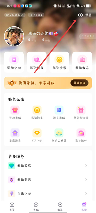 2、在個(gè)人中心頁(yè)面,點(diǎn)擊右上角的設(shè)置圖標(biāo),進(jìn)入設(shè)置界面。