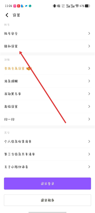 3、在設(shè)置界面中,找到并點(diǎn)擊隱私設(shè)置選項(xiàng),進(jìn)如隱私頁(yè)面。