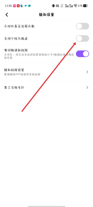 4、在隱私設(shè)置頁(yè)面,找到關(guān)閉個(gè)性化推送選項(xiàng),將其開(kāi)關(guān)開(kāi)啟。