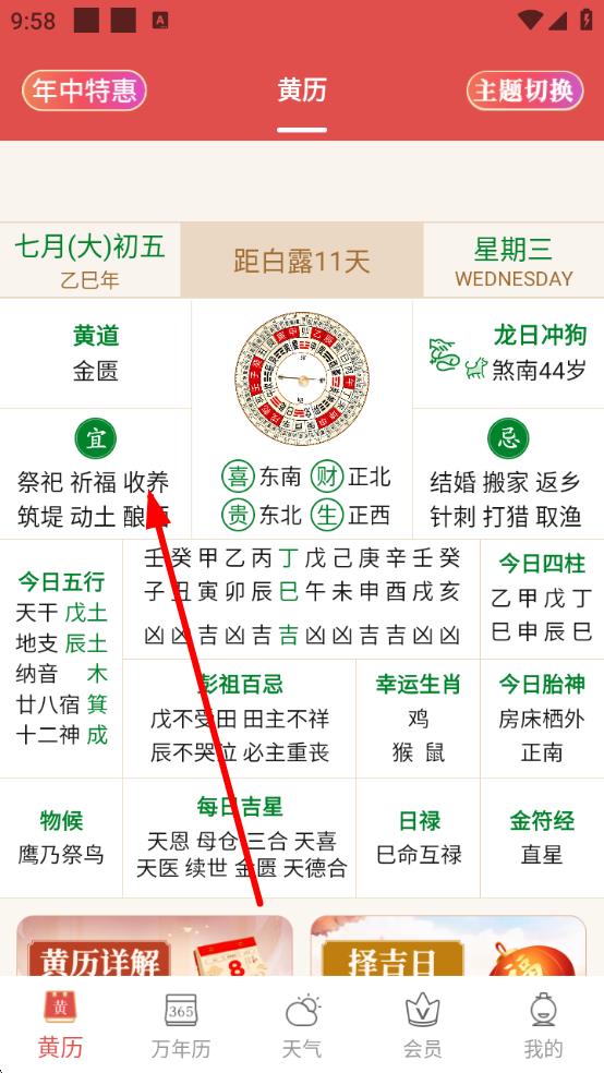 2、在黃歷顯示頁(yè)面中,查看當(dāng)天黃歷信息,找到標(biāo)注宜和忌事項(xiàng)的區(qū)域。