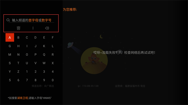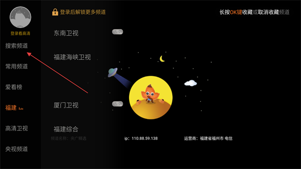 2、滑動后,在左側彈出菜單欄,點擊搜索頻道。