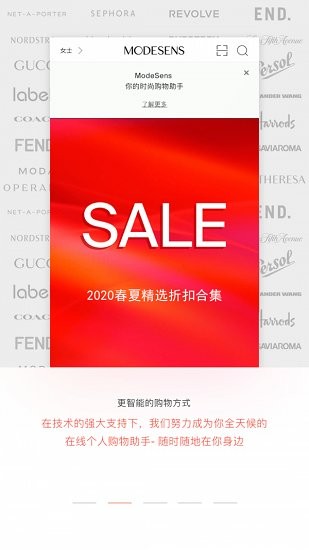 modesens app是一個(gè)海外時(shí)尚奢品的導(dǎo)購(gòu)服務(wù)平臺(tái),主營(yíng)類目包含男女服裝、箱包和鞋履等。modesens app平臺(tái)整合了海外逾百家知名電商的奢品比價(jià)信息,收錄大量高端時(shí)尚品牌與海量當(dāng)季商品,全部商品價(jià)格、折扣、庫(kù)存與海外實(shí)時(shí)同步,境外直郵發(fā)貨。