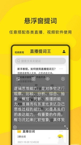 開啟懸浮窗功能,創(chuàng)建文本或?qū)胛谋荆蜷_任意拍攝軟件即可搭配懸浮窗提詞器使用。支持邊播邊看臺(tái)詞,懸浮提詞智能拍攝,告別多手機(jī)提詞。