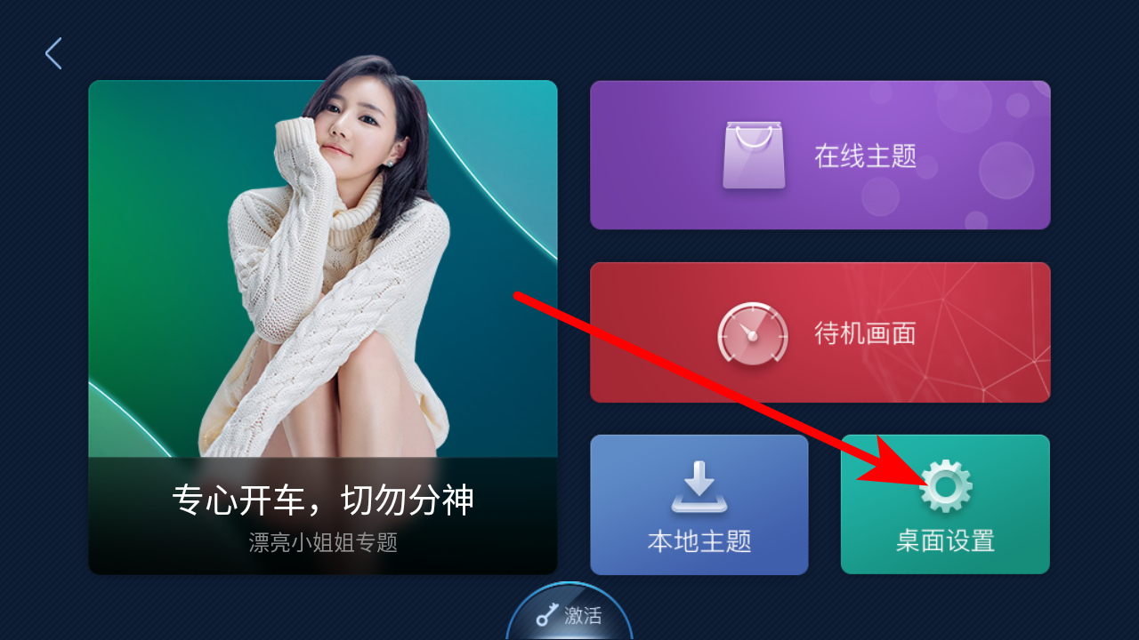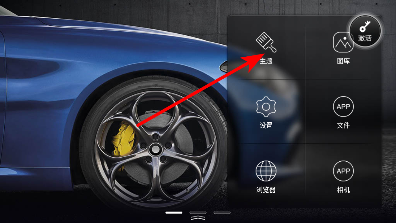 1、在XUI車載桌面功能菜單界面,點擊主題選項,進入主題設(shè)置頁面。