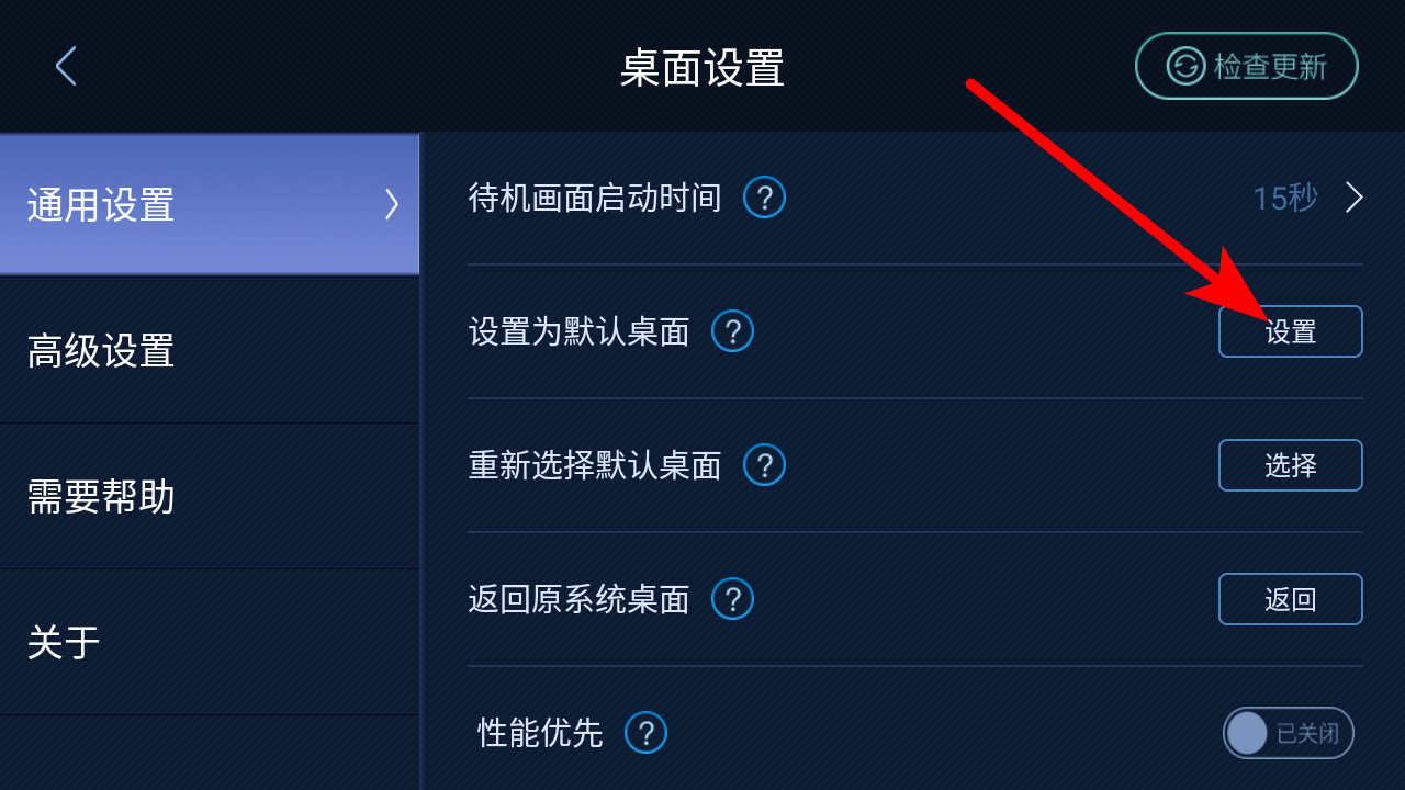 3、在桌面設(shè)置界面,點擊設(shè)置為默認桌面后的設(shè)置按鈕,彈出應(yīng)用選擇窗口。