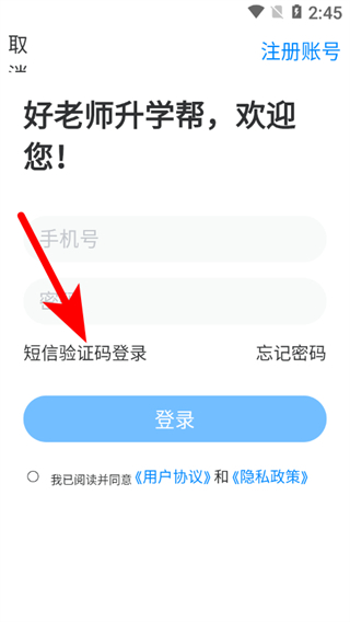 3、在登錄頁面,選擇短信驗證碼登錄方式,進入登錄頁面。
