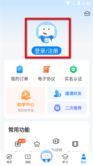 2、在個人中心界面,點擊登錄/注冊按鈕,進入登錄頁面。
