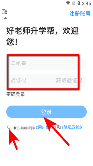 4、輸入手機號碼,勾選同意后,點擊登錄按鈕,即可完成登錄操作。