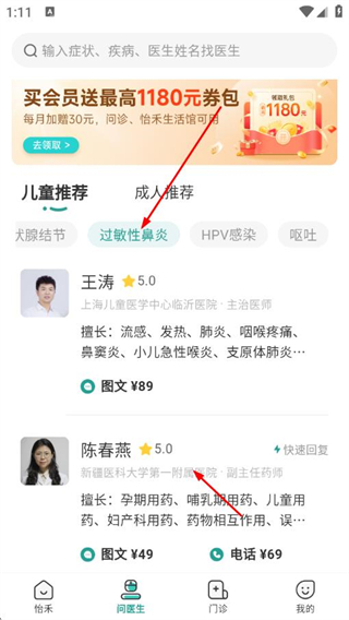 2、在問醫(yī)生頁面,在推薦的疾病分類中選擇,找到合適的醫(yī)生。