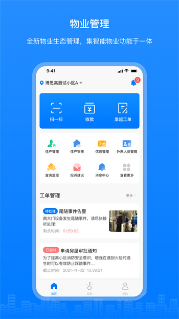 博享家物業(yè)版app擁有很多齊全完善的物業(yè)管理服務(wù)功能,能夠有效的幫助小伙伴在這里輕松進行社區(qū)問題處理,是一款智能便捷的掌上社區(qū)管理手機平臺,支持遠程開門,一鍵智能人臉識別進出服務(wù),可以在這里體驗優(yōu)質(zhì)便捷的功能信息。
