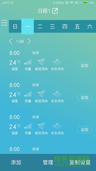 5、支持管理設(shè)定的日程,包括添加、復(fù)制設(shè)置、刪除設(shè)置等,設(shè)備自動按照設(shè)置的日程進(jìn)行運行;