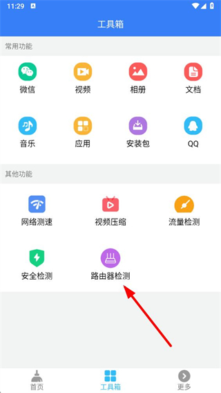 2、在工具箱頁(yè)面中,找到并點(diǎn)擊路由器檢測(cè)選項(xiàng)。