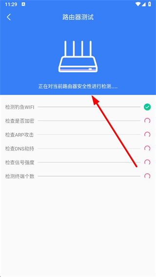 3、進(jìn)入路由器測(cè)試頁(yè)面后,軟件會(huì)自動(dòng)對(duì)當(dāng)前路由器安全性進(jìn)行檢測(cè)。