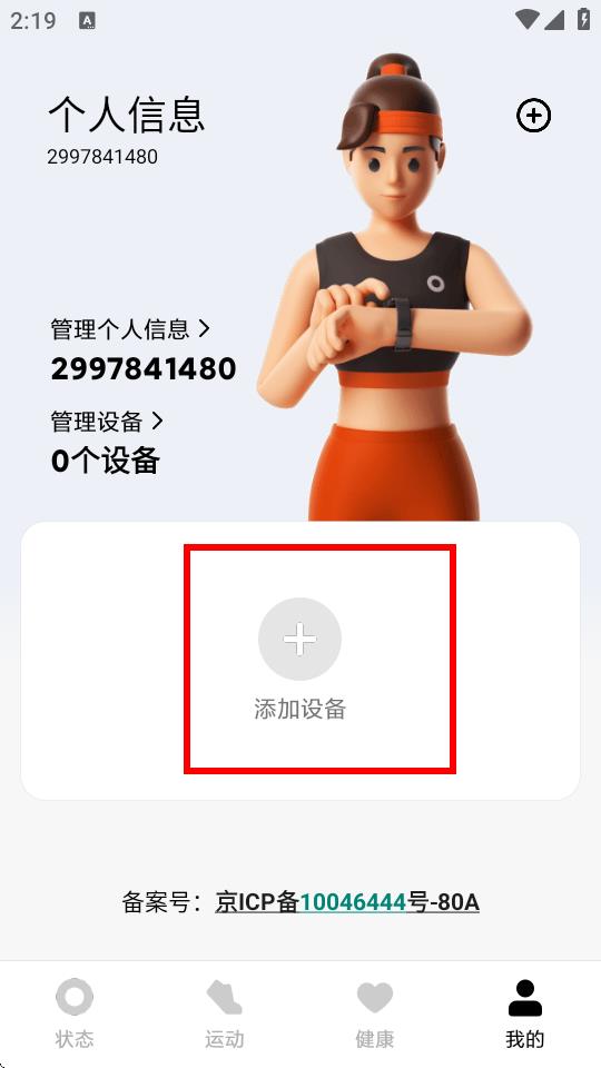 2、在我的頁面中,點擊添加設(shè)備按鈕。