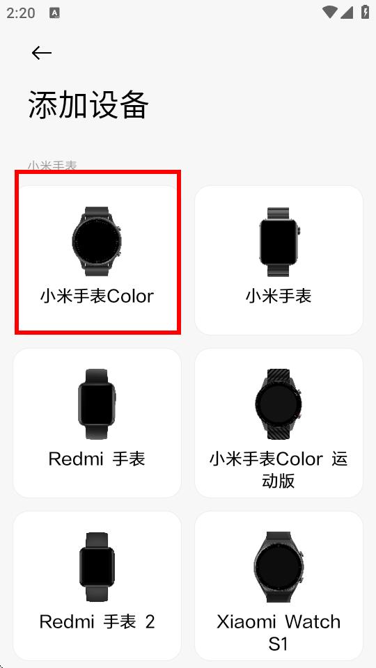 3、進入添加設(shè)備頁面后,在設(shè)備列表中選擇要添加的設(shè)備,比如小米手表Color。