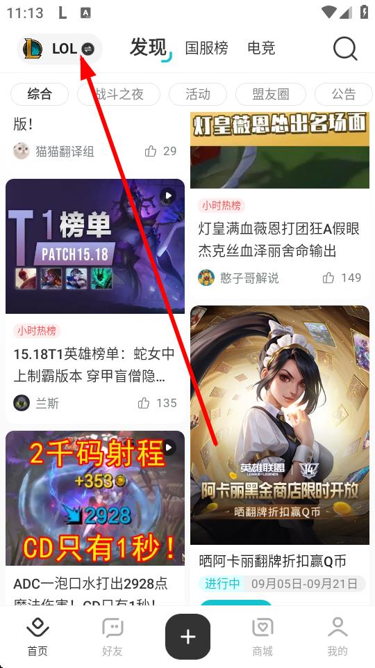 1、打開(kāi)掌上英雄聯(lián)盟App,點(diǎn)擊左上角的LOL圖標(biāo)。