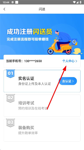 1、在閃送員app界面點(diǎn)擊個(gè)人中心選項(xiàng),進(jìn)入個(gè)人中心頁面。