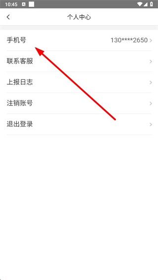 2、在個(gè)人中心頁面點(diǎn)擊手機(jī)號(hào)選項(xiàng),進(jìn)入修改手機(jī)號(hào)頁面。