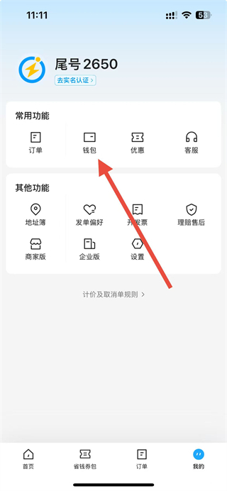 2、在個(gè)人頁面點(diǎn)擊錢包選項(xiàng),進(jìn)入我的錢包頁面。