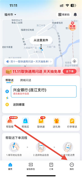 1、在閃送員app首頁點(diǎn)擊我的選項(xiàng),進(jìn)入個(gè)人頁面。