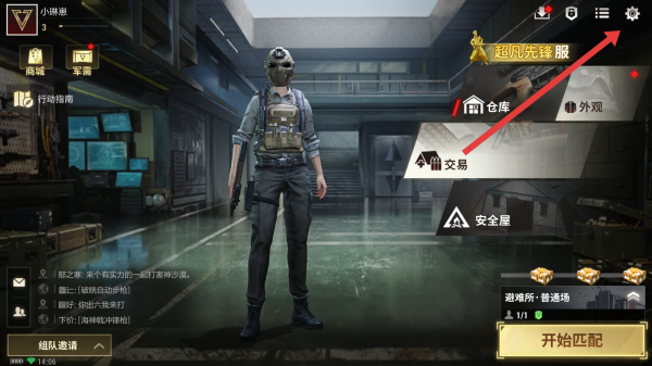 1、打開超凡先鋒游戲,進(jìn)入游戲主界面,點擊右上角的設(shè)置圖標(biāo),進(jìn)入設(shè)置頁面。