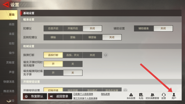 2、在設(shè)置頁面底部,找到并點擊用戶選項,進(jìn)入用戶中心界面。