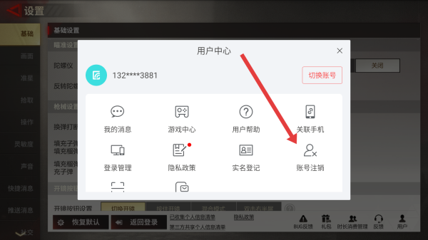 3、在用戶中心界面中,點擊賬號注銷選項,然后按照游戲系統(tǒng)給出的提示和要求,完成身份驗證等相關(guān)操作,注銷后賬號數(shù)據(jù)無法恢復(fù)。