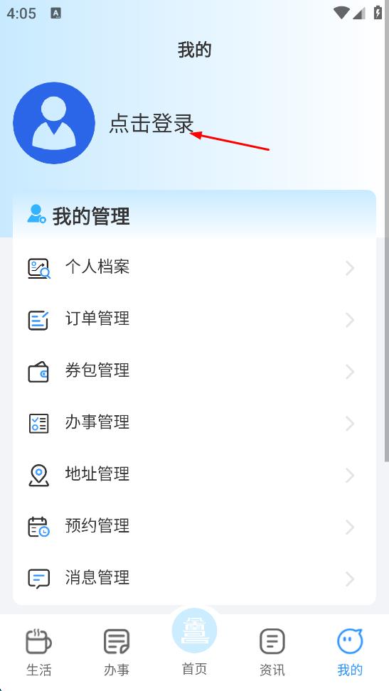 2、在個(gè)人頁(yè)面,點(diǎn)擊“點(diǎn)擊登錄”區(qū)域,進(jìn)入登錄選擇界面。