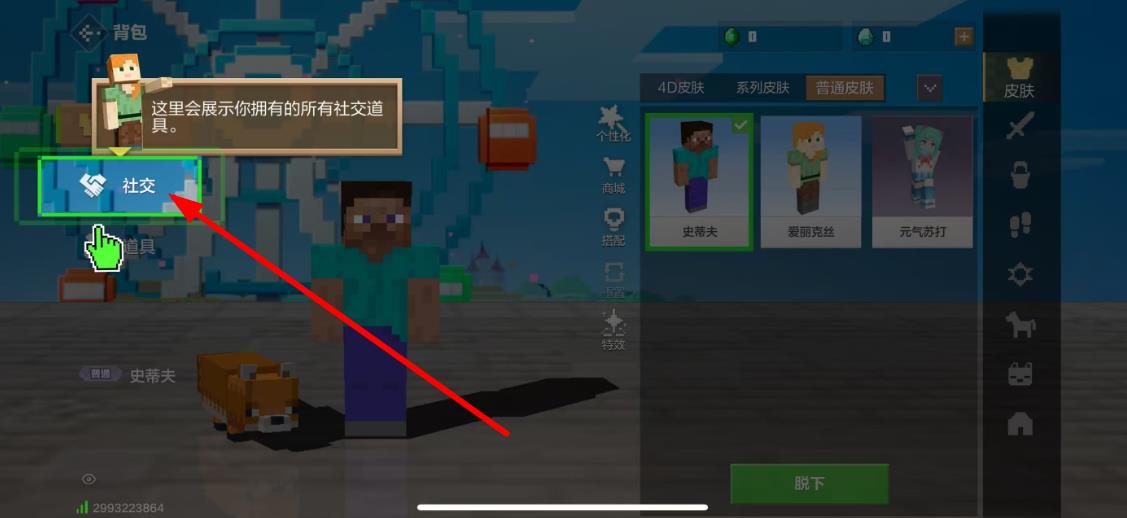 3、確定喜歡該皮膚后,點(diǎn)擊皮膚預(yù)覽下方的社交按鈕,即可成功更換角色皮膚;若后續(xù)想更換回其他皮膚,重復(fù)上述步驟選擇對(duì)應(yīng)皮膚穿戴就行。