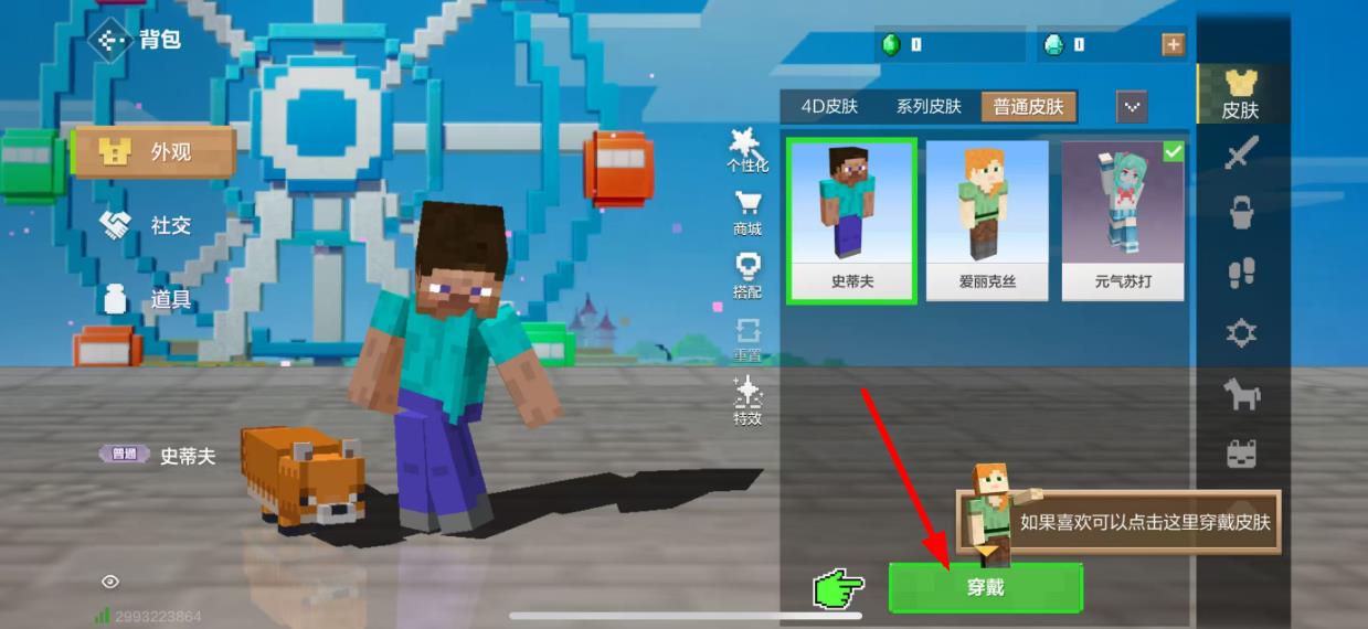 1、進(jìn)入我的世界游戲后,點(diǎn)擊下方的背包按鈕,進(jìn)入背包界面,接著點(diǎn)擊左側(cè)的外觀選項(xiàng)。