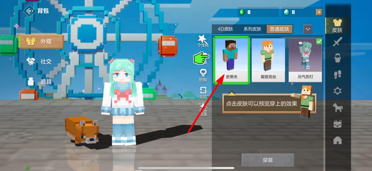 2、在外觀界面右側(cè)的皮膚分類(lèi)中,選擇4D皮膚,系列皮膚或普通皮膚等類(lèi)別,點(diǎn)擊想要更換的皮膚,預(yù)覽穿上后的效果。
