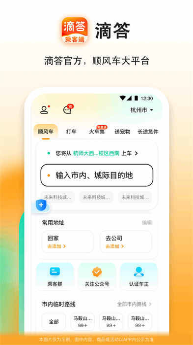 滴答出行順風(fēng)車是專門為乘客們設(shè)計(jì)的出行app,在這里你可以解鎖相關(guān)的服務(wù),不管是打車還是測算車費(fèi),都能在app上完成,讓用戶快速的知道出行距離和話費(fèi),生活中的服務(wù)更加貼心,輕松保證你的出行!
