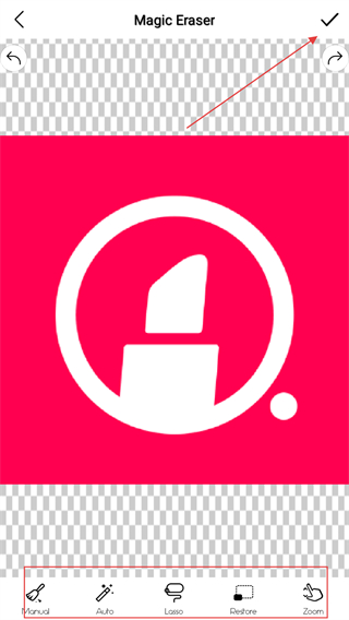 3、選中圖片后,進入編輯界面,使用底部工具編輯,編輯完點擊對鉤保存。