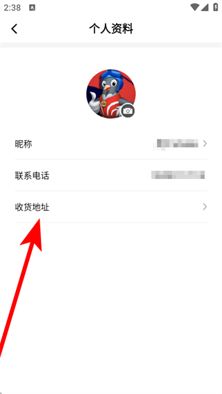 3、在個(gè)人資料界面中,點(diǎn)擊收貨地址,進(jìn)入設(shè)置收貨地址頁(yè)面。