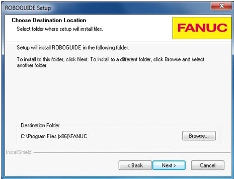5)然后,顯示“ROBOGUIDE設置選擇目標位置”窗口。 安裝路徑顯示在“目標文件夾”。如果要更改目標文件夾,請單擊“瀏覽...”按鈕,并指定目標文件夾。 指定目標文件夾后,單擊“下一步>”按鈕。