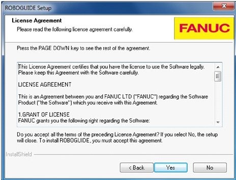 4)顯示“ROBOGUIDE設置 - 許可協(xié)議”窗口。 請檢查詳細信息,然后單擊“是”按鈕。