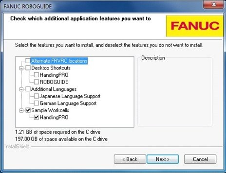 8)“FANUC ROBOGUIDE - 檢查您要添加的其他應用程序功能”窗口顯示。 選擇要安裝的功能,然后單擊“下一步”按鈕。