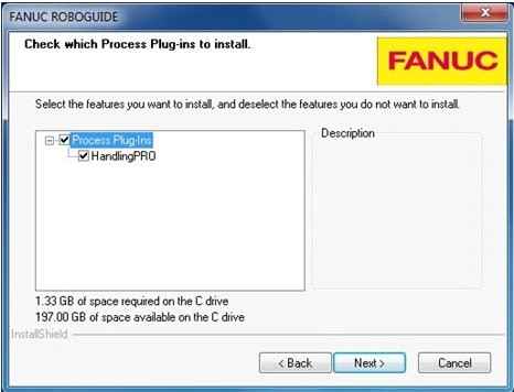 6)顯示“FANUC ROBOGUIDE - 檢查要安裝的過程插件”窗口。 選擇要安裝的功能,然后單擊“下一步”按鈕。 這里可以選擇的功能因您購買的選項而異。