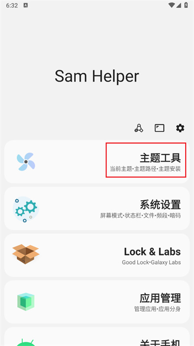 2、安裝自定義主題和字體:sam helper軟件獲取當前使用的主題、圖標、aod、壁紙的apk包名、查詢已安裝的apk路徑等